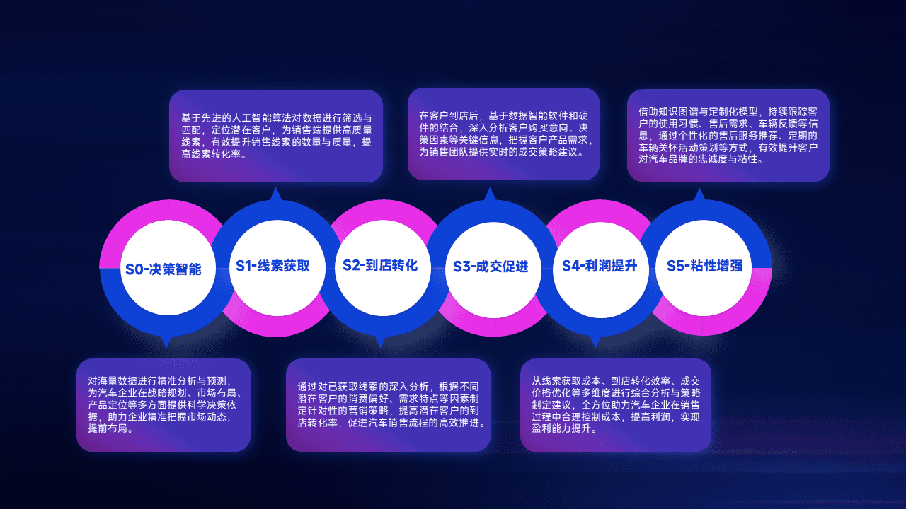 通过拓宽潜在客户来源、、、、优化线索分配并提高到店转化率,,,,以增强销售效率。。。。同时,,,利用线索数据不断优化分析模型,,,有效提升转化率,,,,扩大营销影响力。。。